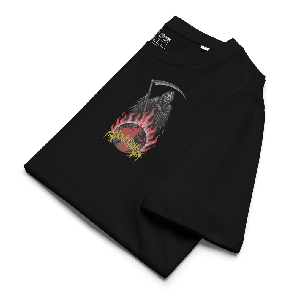 The end is near... and it’s never looked this good. This tee drops you straight into the final chapter, featuring a grim reaper design that fuses death, destruction, and drippy chaos, "World Rapture" is a reminder that style survives the fallout.